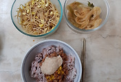 밥 조금과 나물, 청국장을 곁들여 먹고