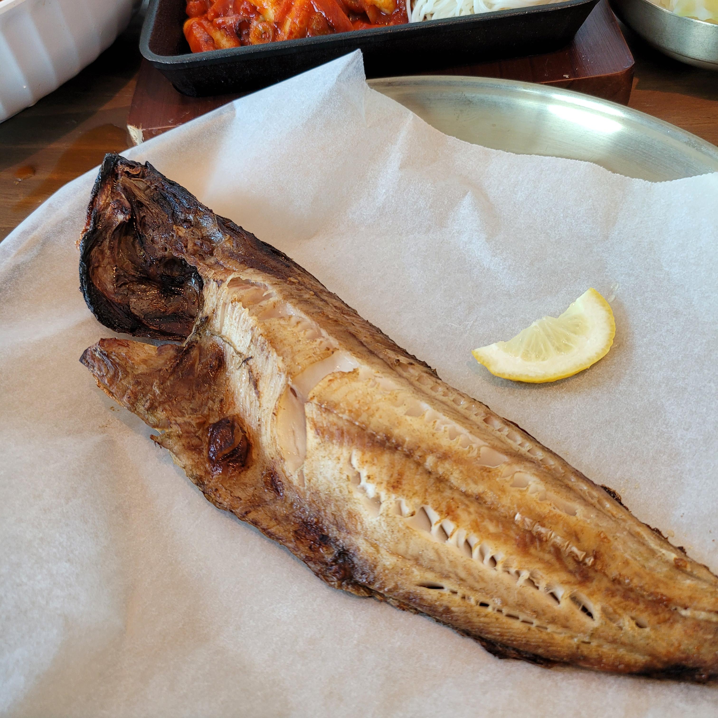 연수는 원래 살이 고소하거든요. 집에서는 구울 수 없는, 기름이 없이 부드럽게 구워진 생선구이에요.