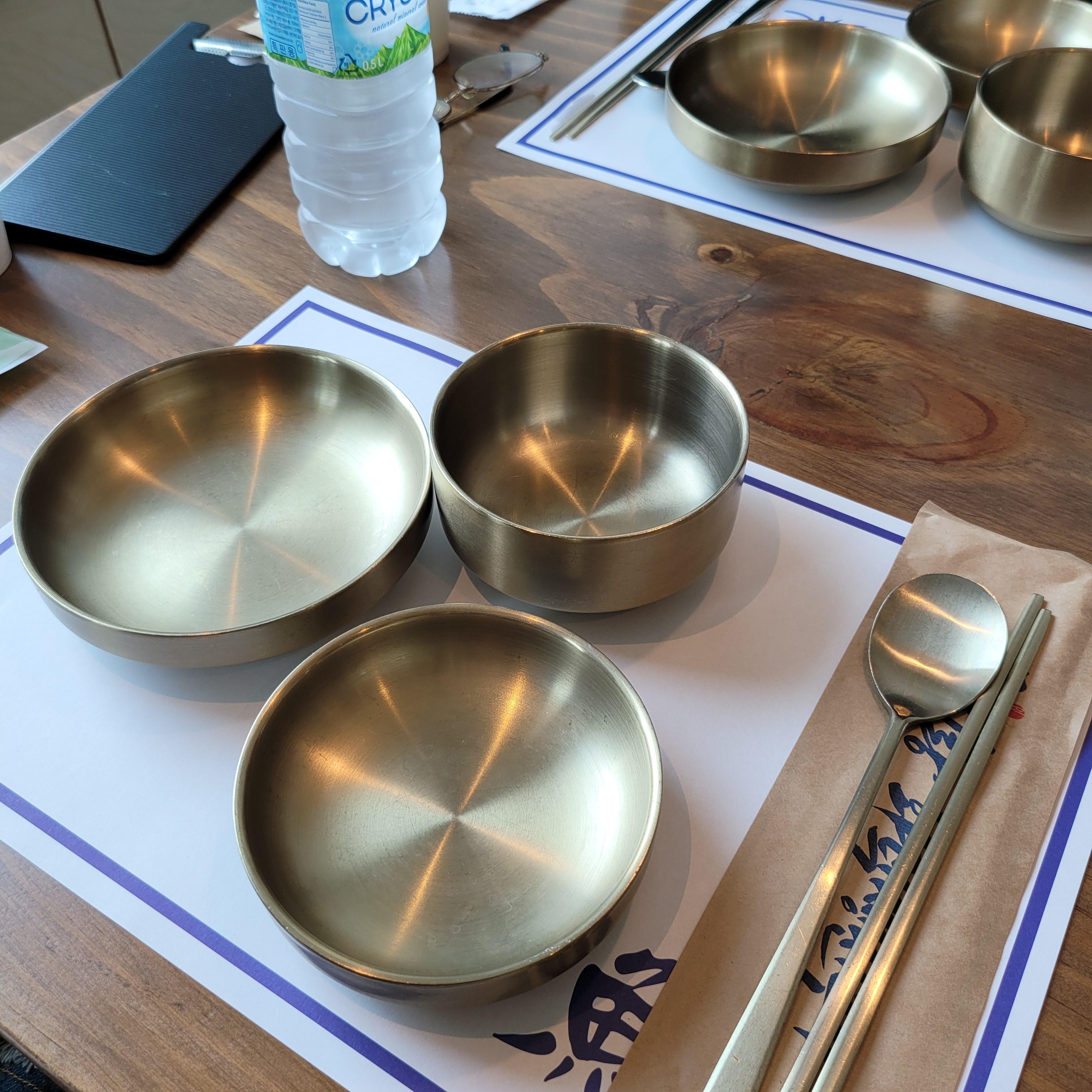 놋그릇(?) 인가요! 반짝반짝 임금님 밥상분위기.