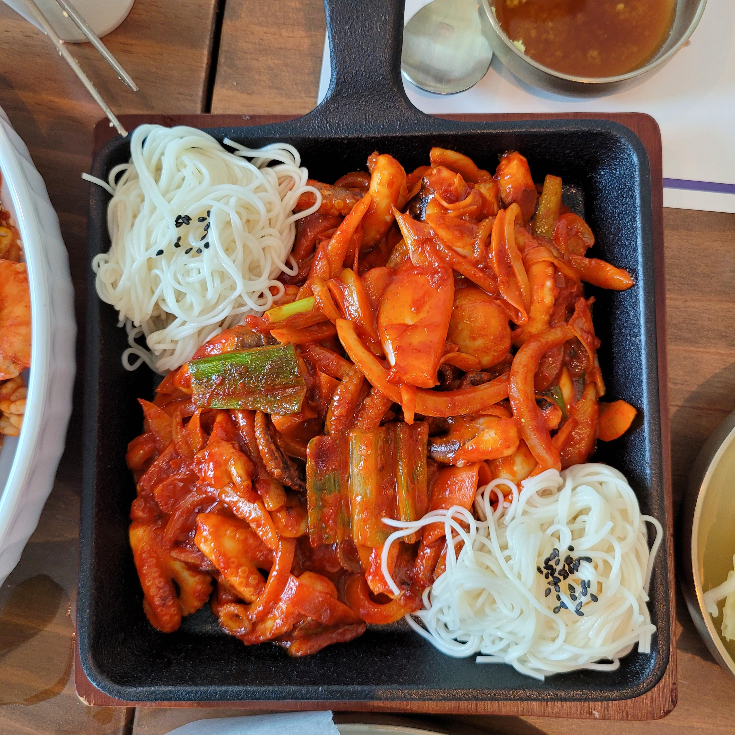 쭈꾸미는 통통한 녀석들이 부드럽게 잘 볶아졌어요. 해물찜보다 쭈꾸미볶음이 매워요.