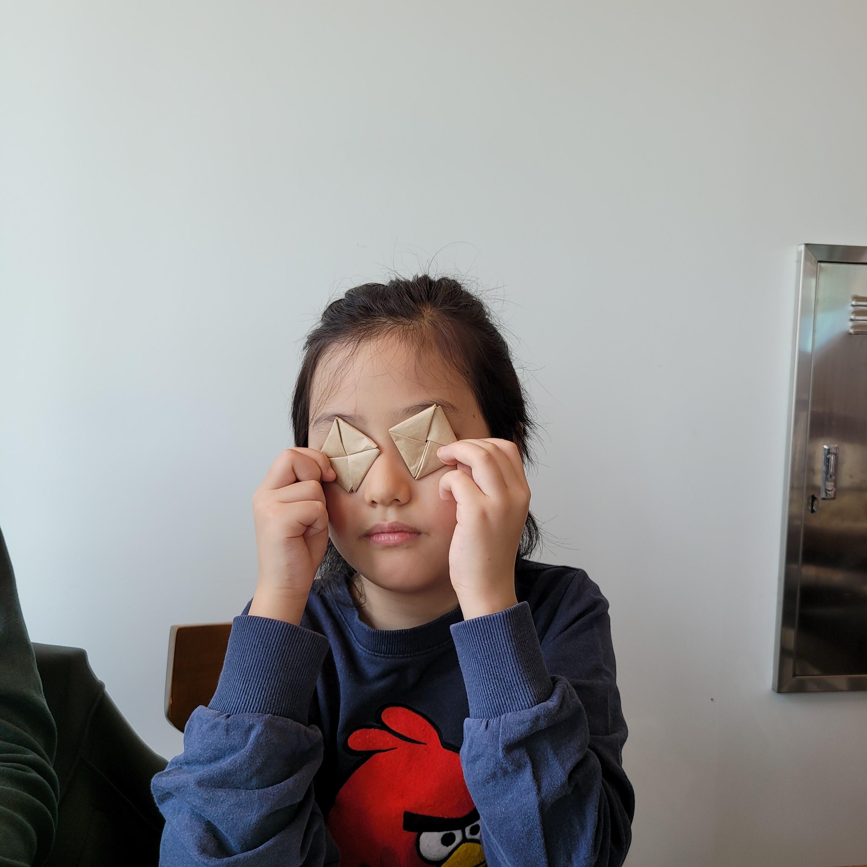 심심한 소년은 숟가락 봉지를 접어 숨박꼭질을 하기도하고. (아, 배가 고파요)