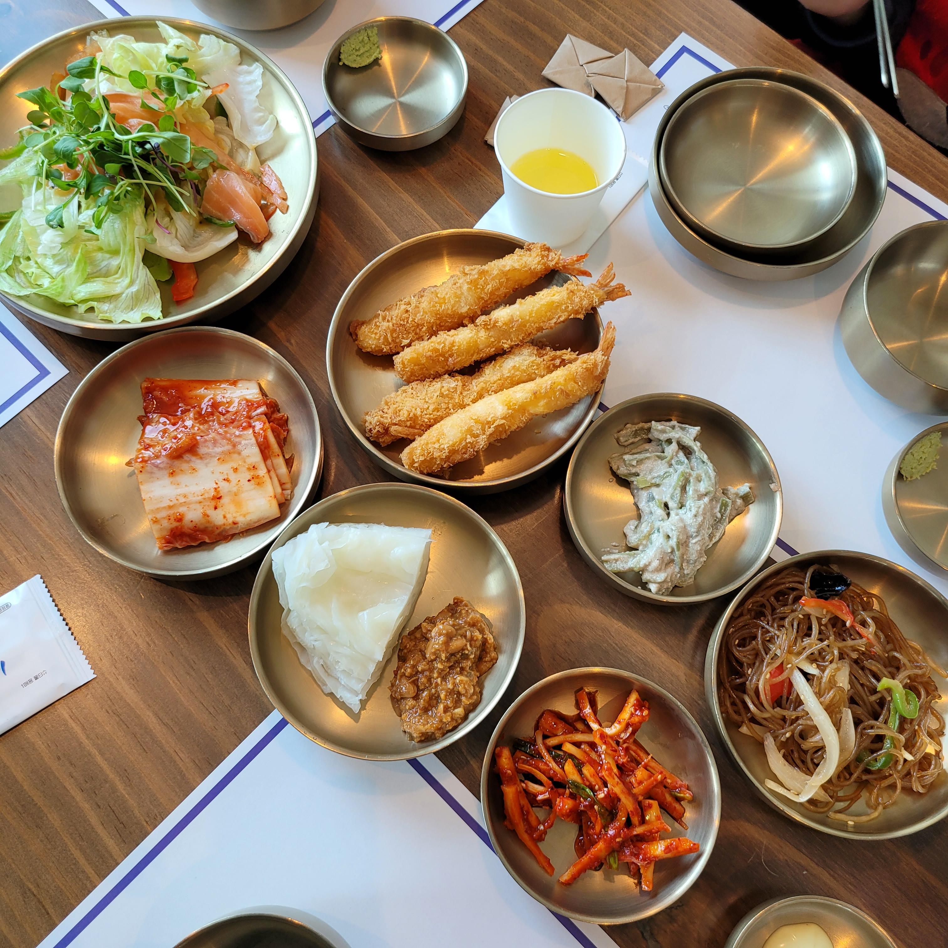 🦐새우튀김과 🥗연어샐러드가 밑반찬이라니.
