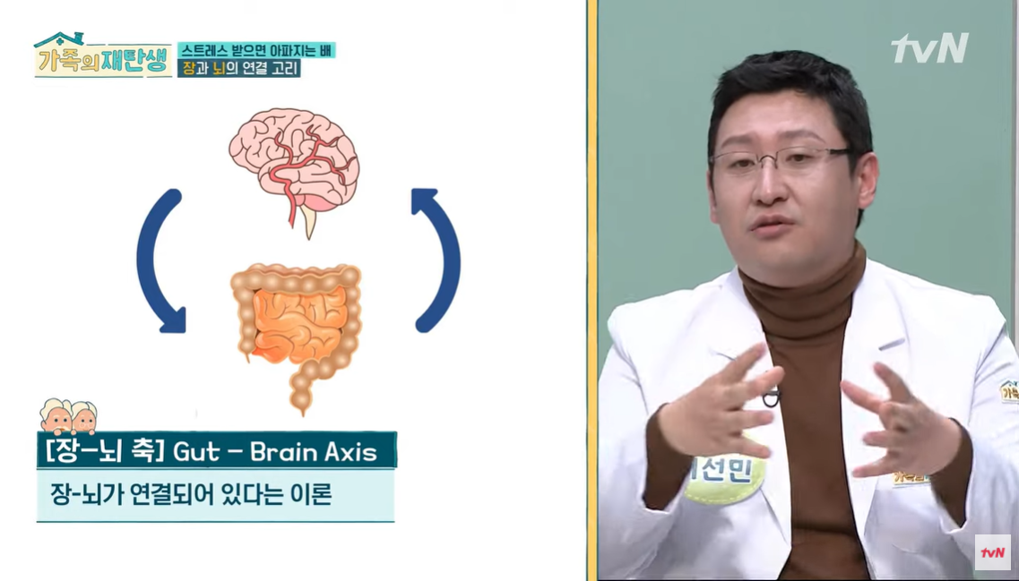 장과 뇌가 연결되어있다고 말하네요.