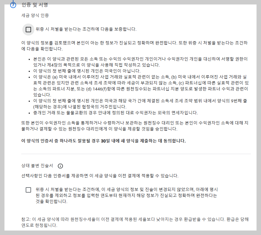 미국에서 소득이 발생하는 사람이 아니라는 것을 다시 한번 확인하는 단계이니